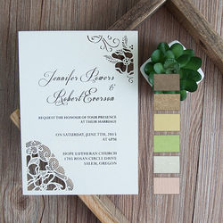 Our design team focus on the traditional and classic wedding invitations, in brand new laser-cut styles, which is extremely popular in wedding market right now. At Wedding Essentials, we offer a wide range of stunning laser-cut wedding invitations, foil-stamped designs, letterpress invitations and thermo-graphic printing. Our invitations come in many colours to match your wedding theme. From Invitations, place cards to save the date cards, we provide it all in a large variety of designs. Book a consultation to view your options.